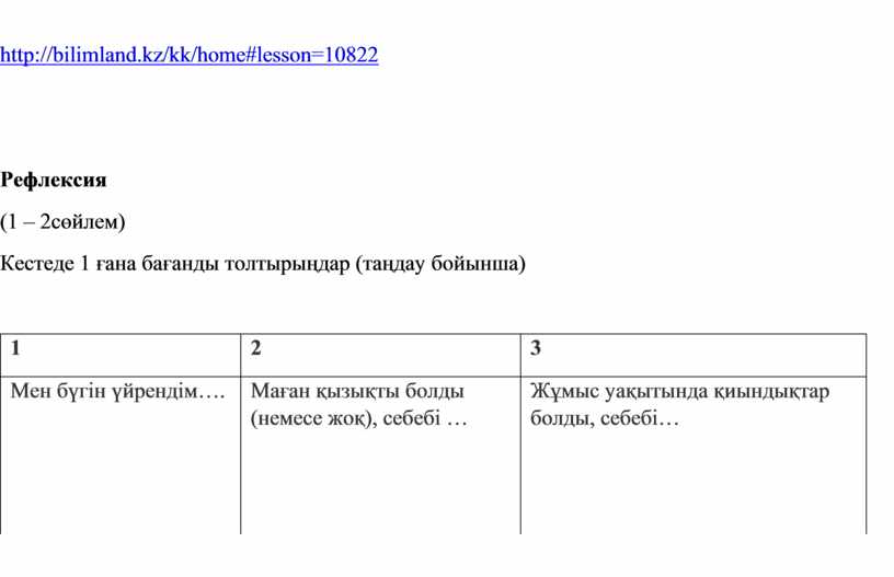 Кестеде 1 ғана бағанды толтырыңдар (таңдау бойынша)