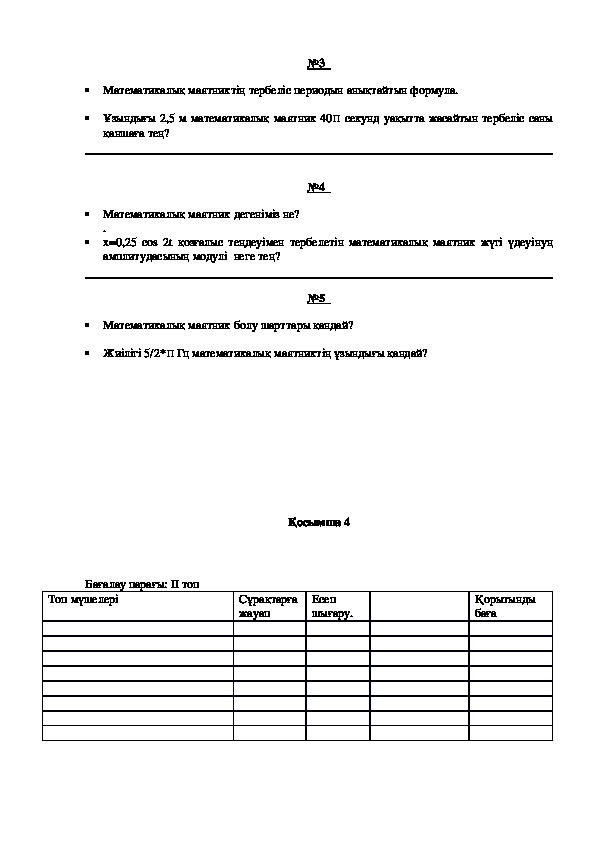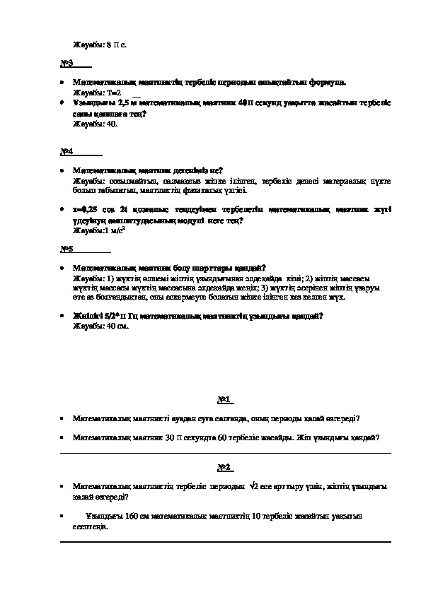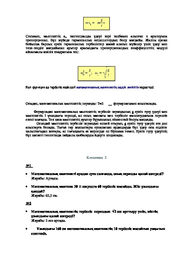 Осы үш шартқа ұзын жіңішке жіпке ілінген кішкентай массалы шарик толық жауап