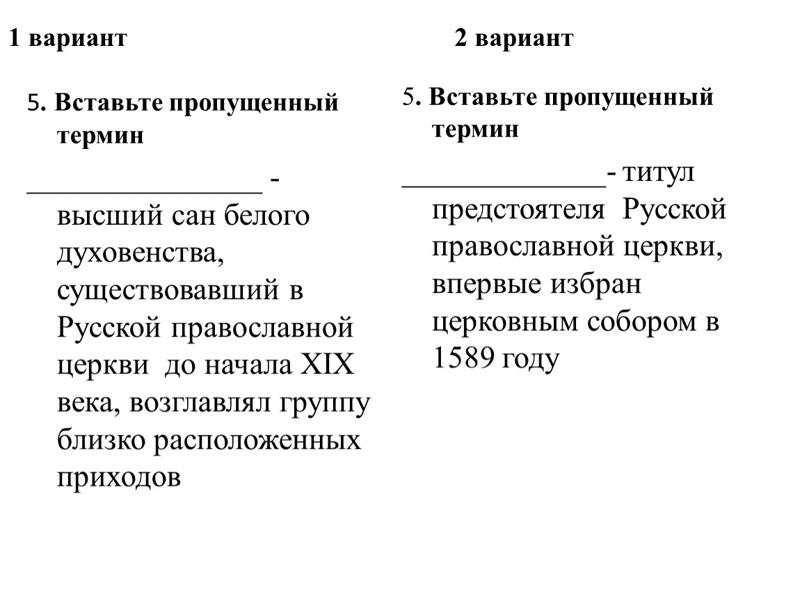 _______________ - высший сан белого духовенства, существовавший в Русской православной церкви до начала XIX века, возглавлял группу близко расположенных приходов