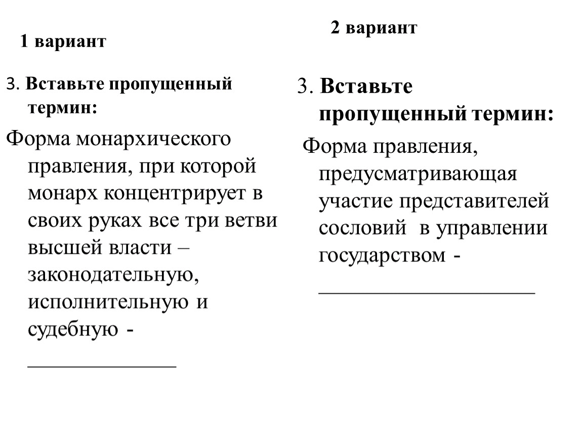 Форма правления, предусматривающая участие представителей сословий в управлении государством - ___________________