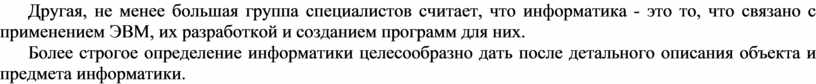 Более строгое определение информатики целесообразно дать после детального описания объекта и предмета информатики.