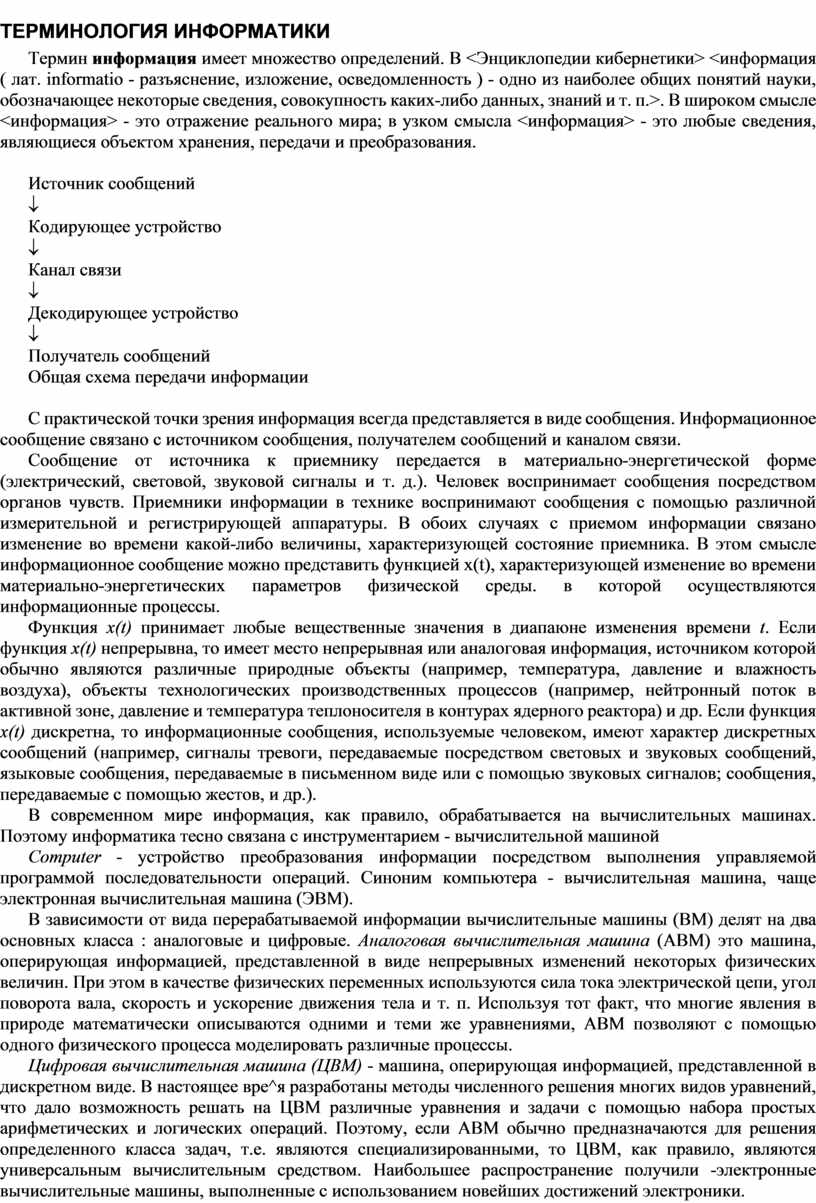 ТЕРМИНОЛОГИЯ ИНФОРМАТИКИ