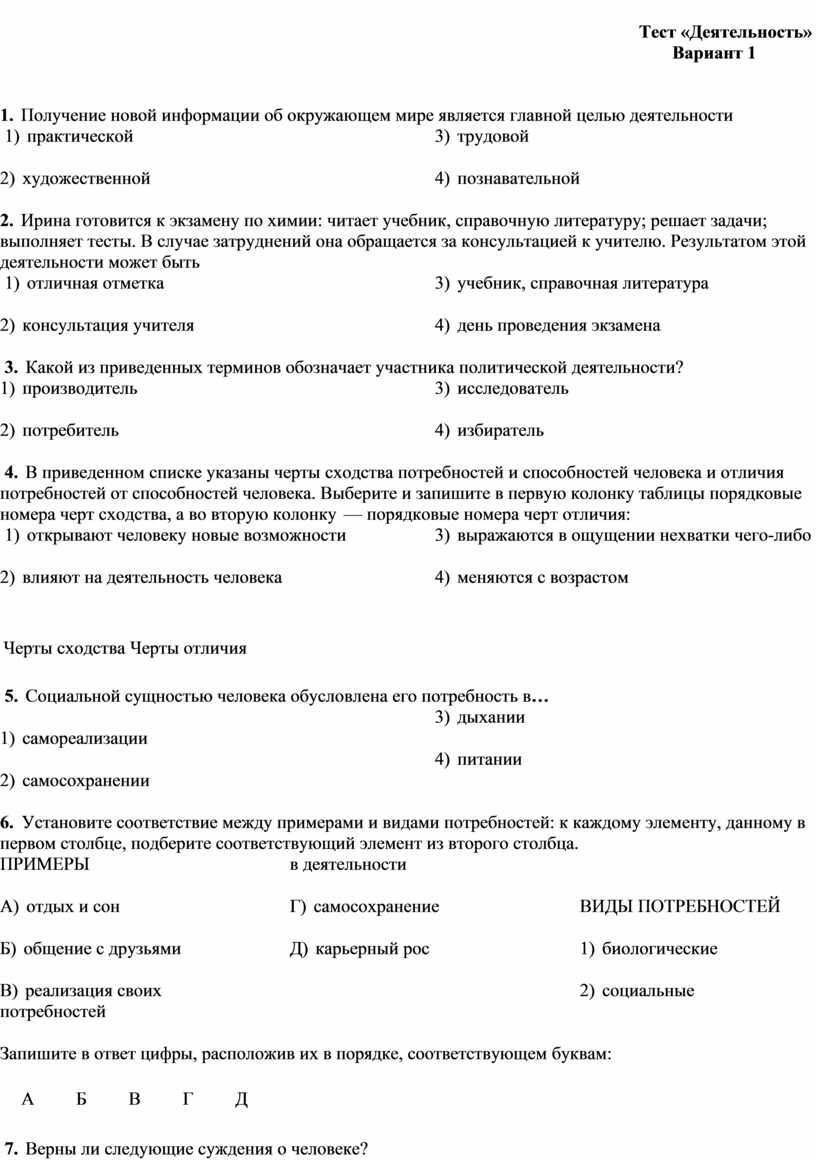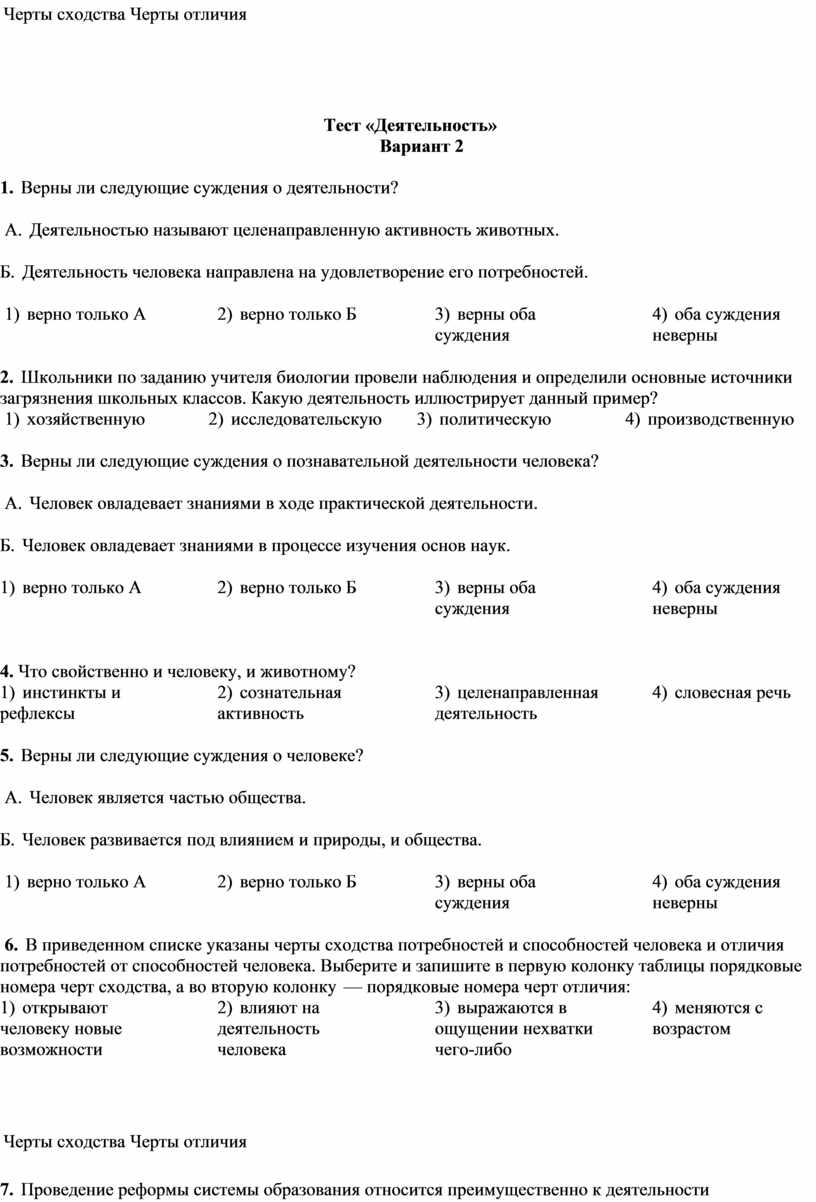 6. В приведенном списке указаны черты сходства потребностей и способностей человека и отличия потребностей от способностей человека. Выберите и запишите в первую колонку таблицы порядковые номера черт сходства, а во вторую колонку — порядковые номера черт отличия: