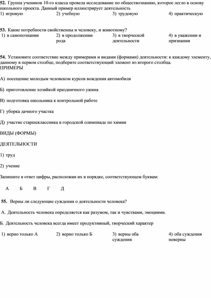 52. Группа учеников 10-го класса провела исследование по обществознанию, которое легло в основу школьного проекта. Данный пример иллюстрирует деятельность