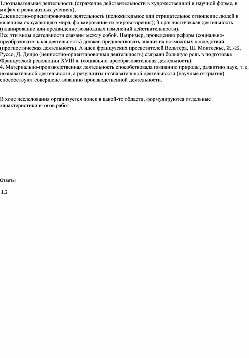 2.ценностно-ориентировочная деятельность (положительное или отрицательное отношение людей к явлениям окружающего мира, формирование их мировоззрения); 3.прогностическая деятельность (планирование или предвидение возможных изменений действительности).