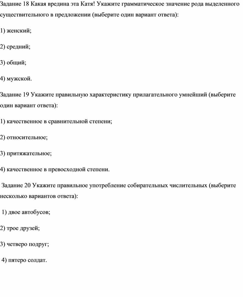 Задание 18 Какая вредина эта Катя! Укажите грамматическое значение рода выделенного существительного в предложении (выберите один вариант ответа):