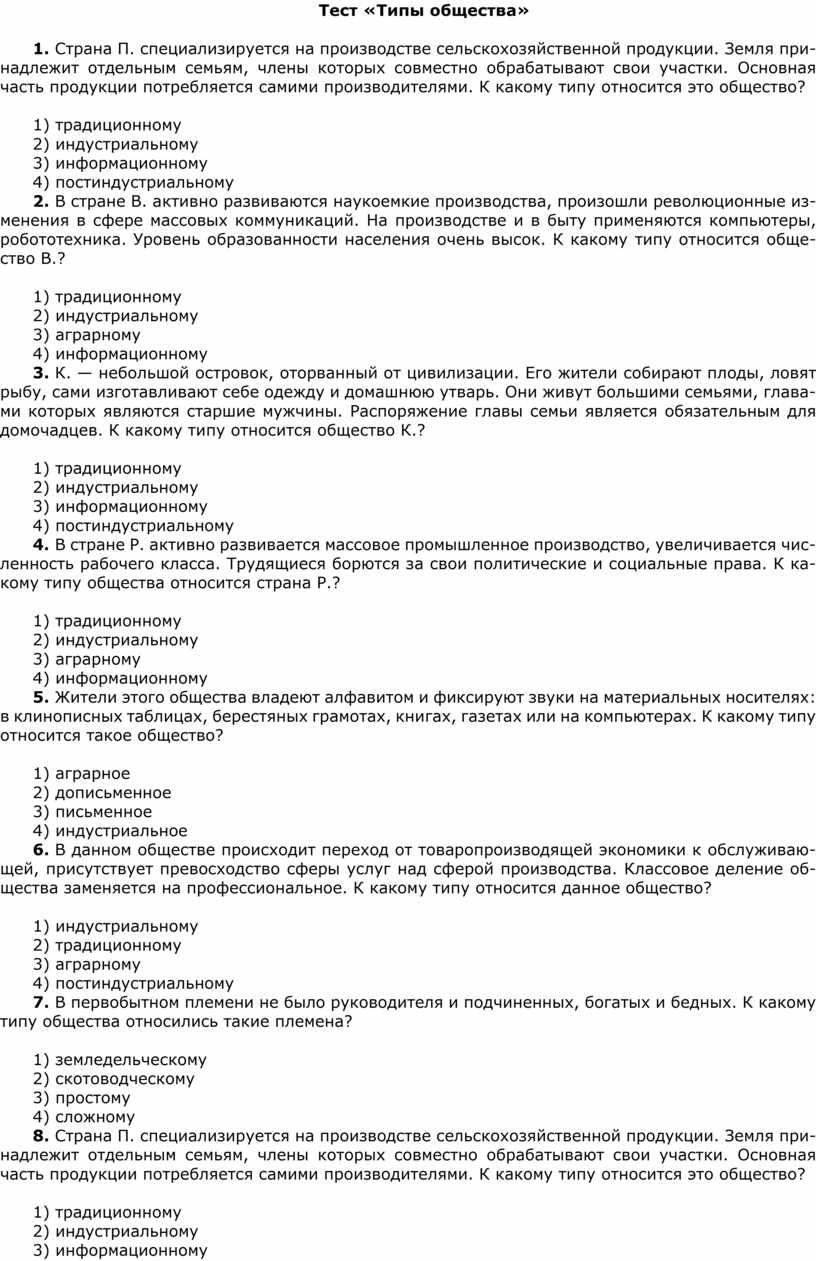 Тест «Типы общества»