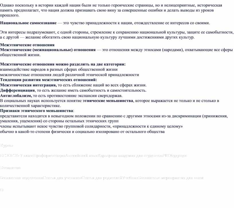 · Межэтническая интеграция, то есть сближение наций во всех сферах жизни.