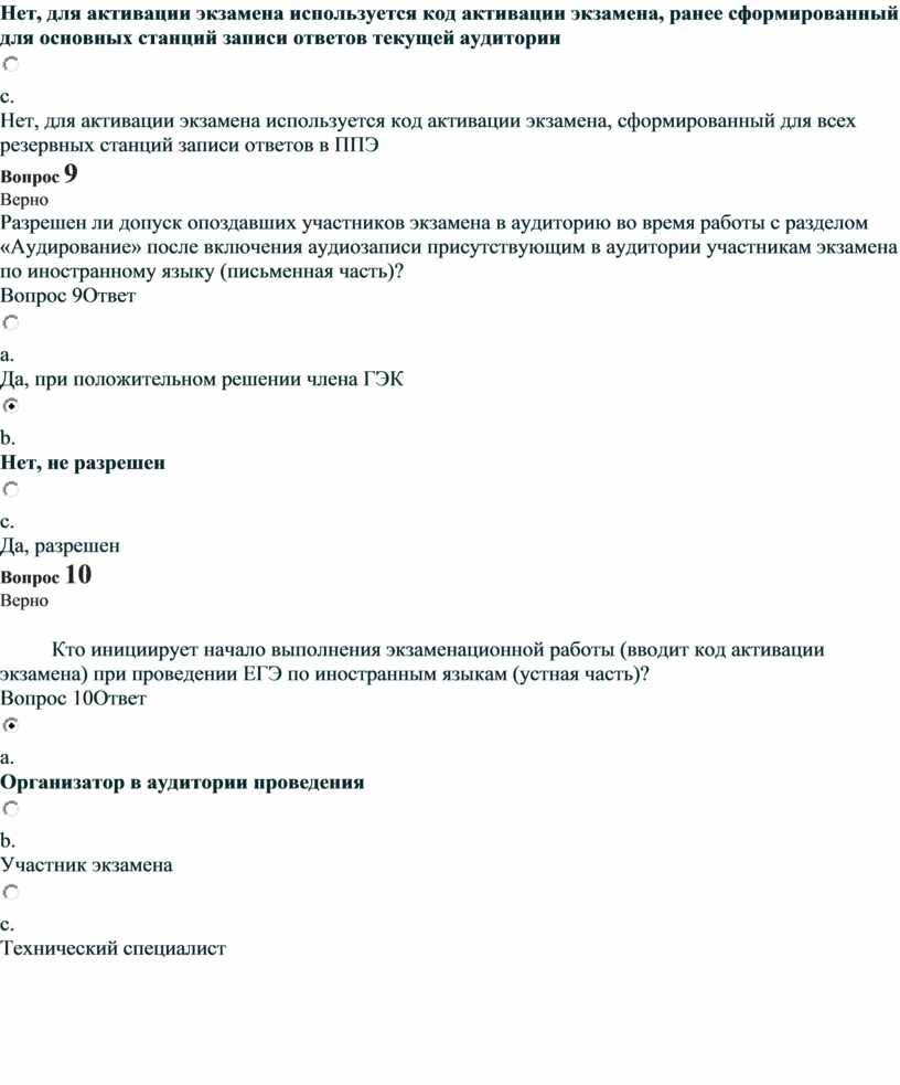 Нет, для активации экзамена используется код активации экзамена, ранее сформированный для основных станций записи ответов текущей аудитории