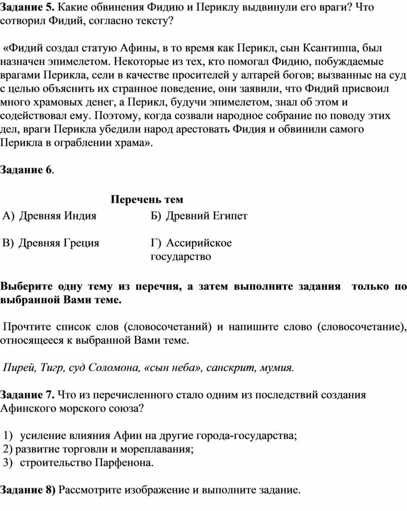 Задание 5. Какие обвинения Фидию и Периклу выдвинули его враги? Что сотворил Фидий, согласно тексту?