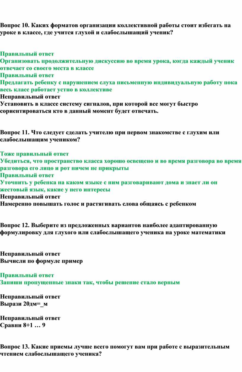 Вопрос 10. Каких форматов организации коллективной работы стоит избегать на уроке в классе, где учится глухой и слабослышащий ученик?