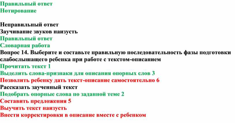 Вопрос 14. Выберите и составьте правильную последовательность фазы подготовки слабослышащего ребенка при работе с текстом-описанием