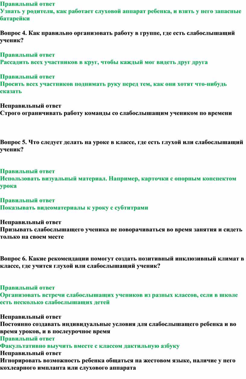 Вопрос 6. Какие рекомендации помогут создать позитивный инклюзивный климат в классе, где учится глухой или слабослышащий ученик?
