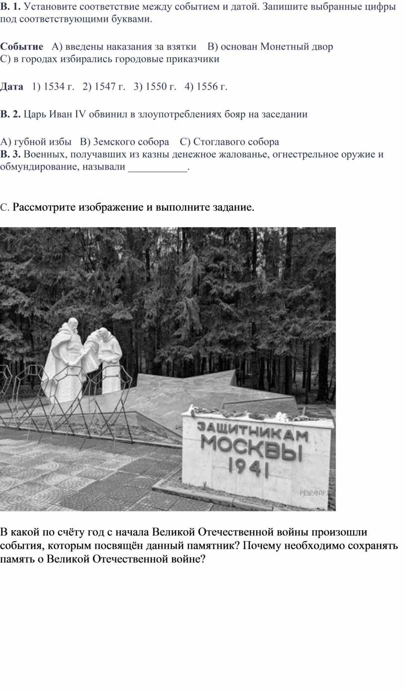 В. 1. Установите соответствие между событием и датой. Запишите выбранные цифры под соответствующими буквами.
