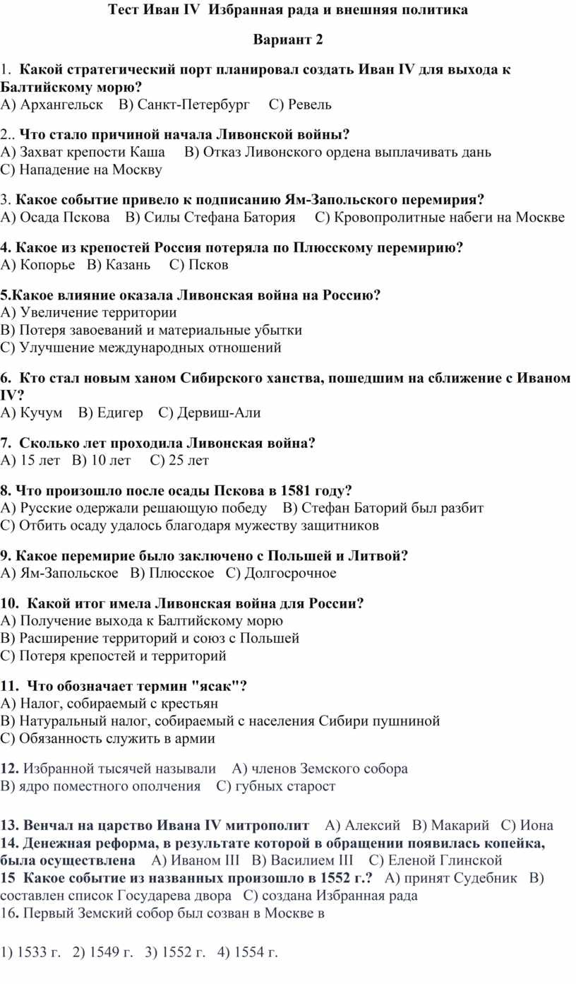 1) 1533 г. 2) 1549 г. 3) 1552 г. 4) 1554 г.