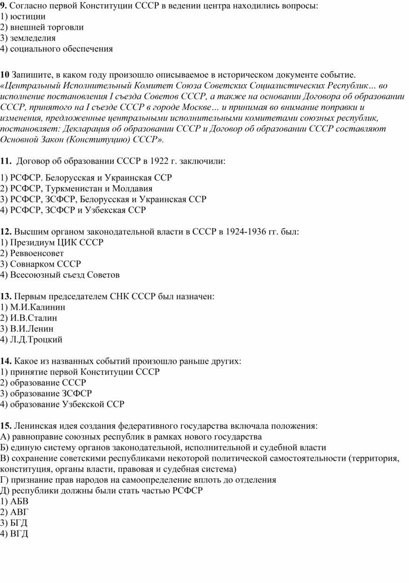 9. Согласно первой Конституции СССР в ведении центра находились вопросы: