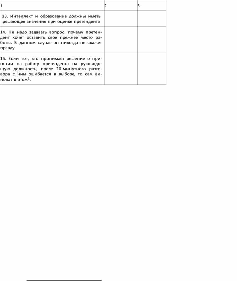 15. Если тот, кто принимает решение о при-нятии на работу претендента на руководя-щую должность, после 20-минутного разго-вора с ним ошибается в выборе, то сам ви-новат в этом1. |