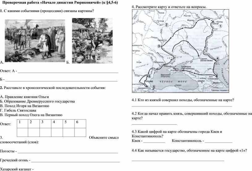 Проверочная работа «Начало династии Рюриковичей» (к §4,5-6)