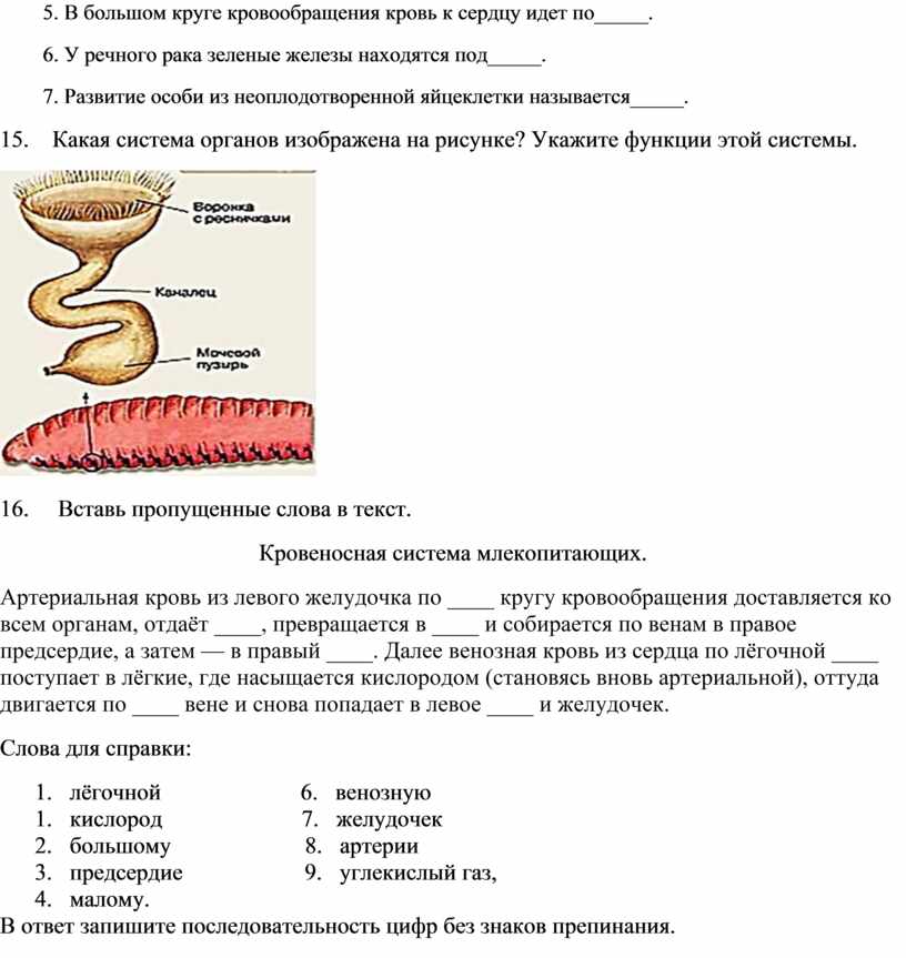 5. В большом круге кровообращения кровь к сердцу идет по_____.