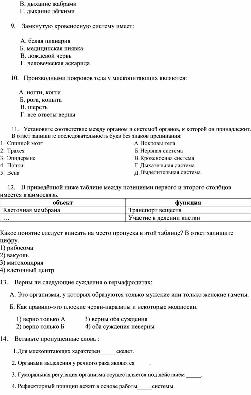 9. Замкнутую кровеносную систему имеет: