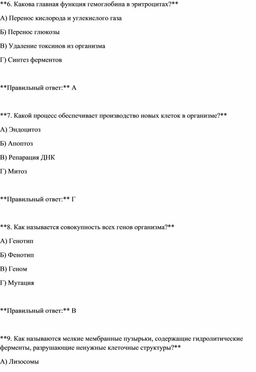 **6. Какова главная функция гемоглобина в эритроцитах?**