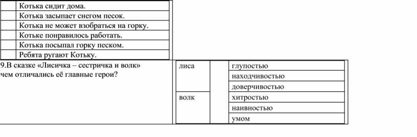 9.В сказке «Лисичка – сестричка и волк» чем отличались её главные герои? |