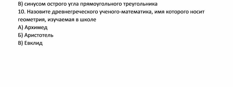 10. Назовите древнегреческого ученого-математика, имя которого носит геометрия, изучаемая в школе