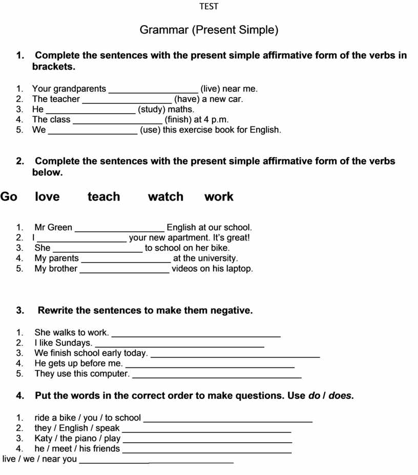 1. Complete the sentences with the present simple affirmative form of the verbs in brackets.