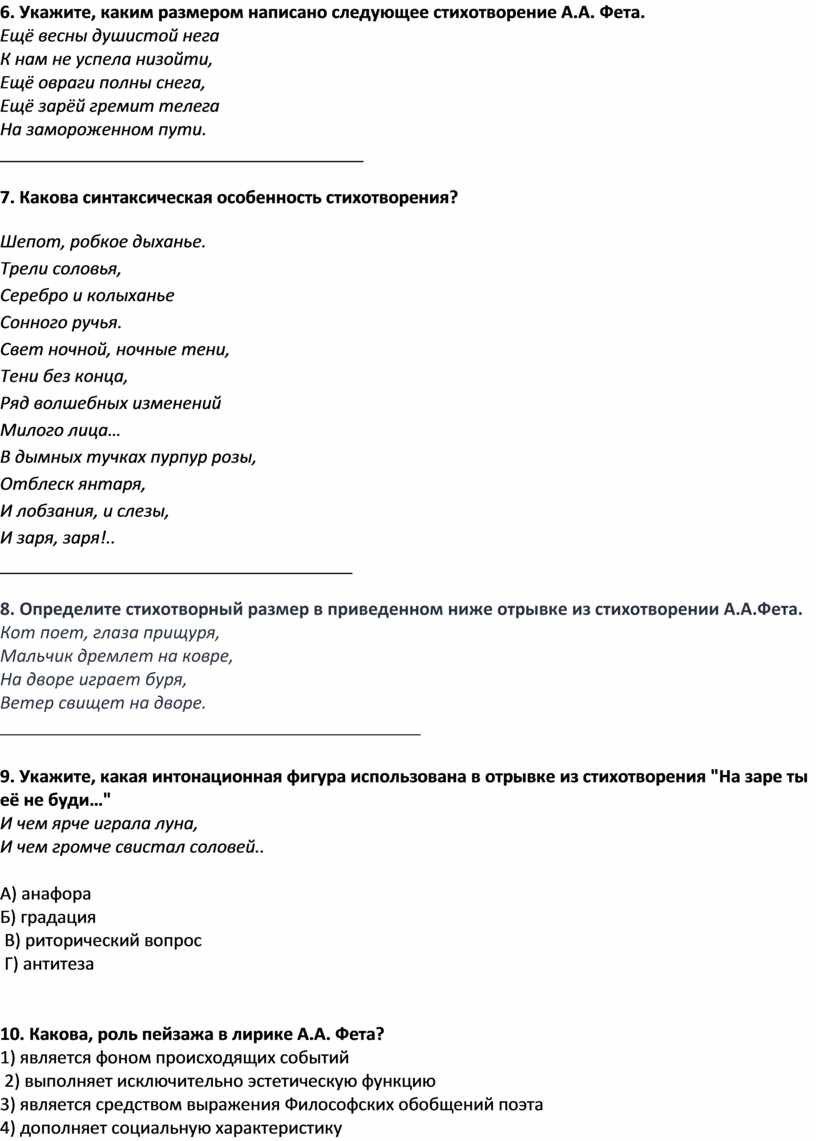 6. Укажите, каким размером написано следующее стихотворение А.А. Фета.
