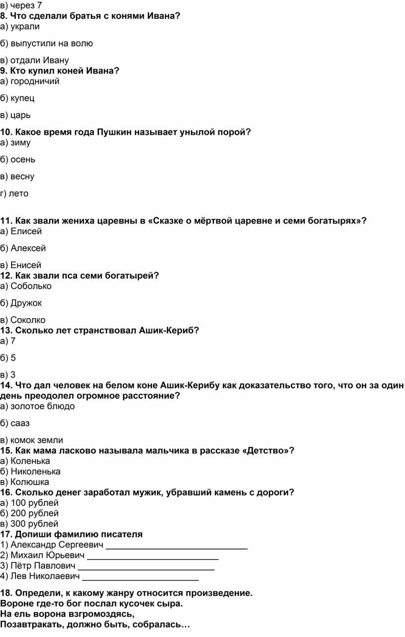 11. Как звали жениха царевны в «Сказке о мёртвой царевне и семи