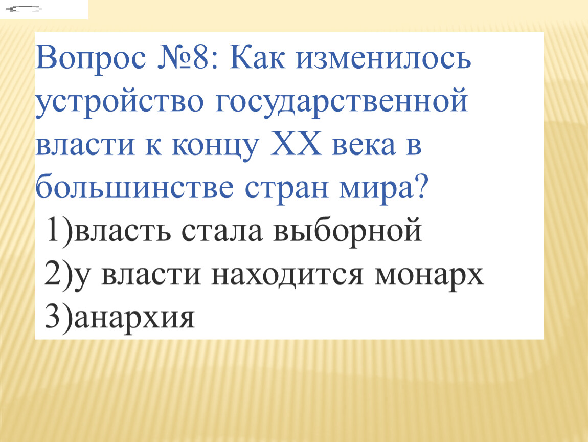 Вопрос №8: Как изменилось устройство государственной власти к концу ХХ века в большинстве стран мира?