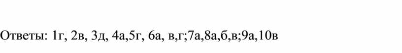 Ответы: 1г, 2в, 3д, 4а,5г, 6а, в,г;7а,8а,б,в;9а,10в