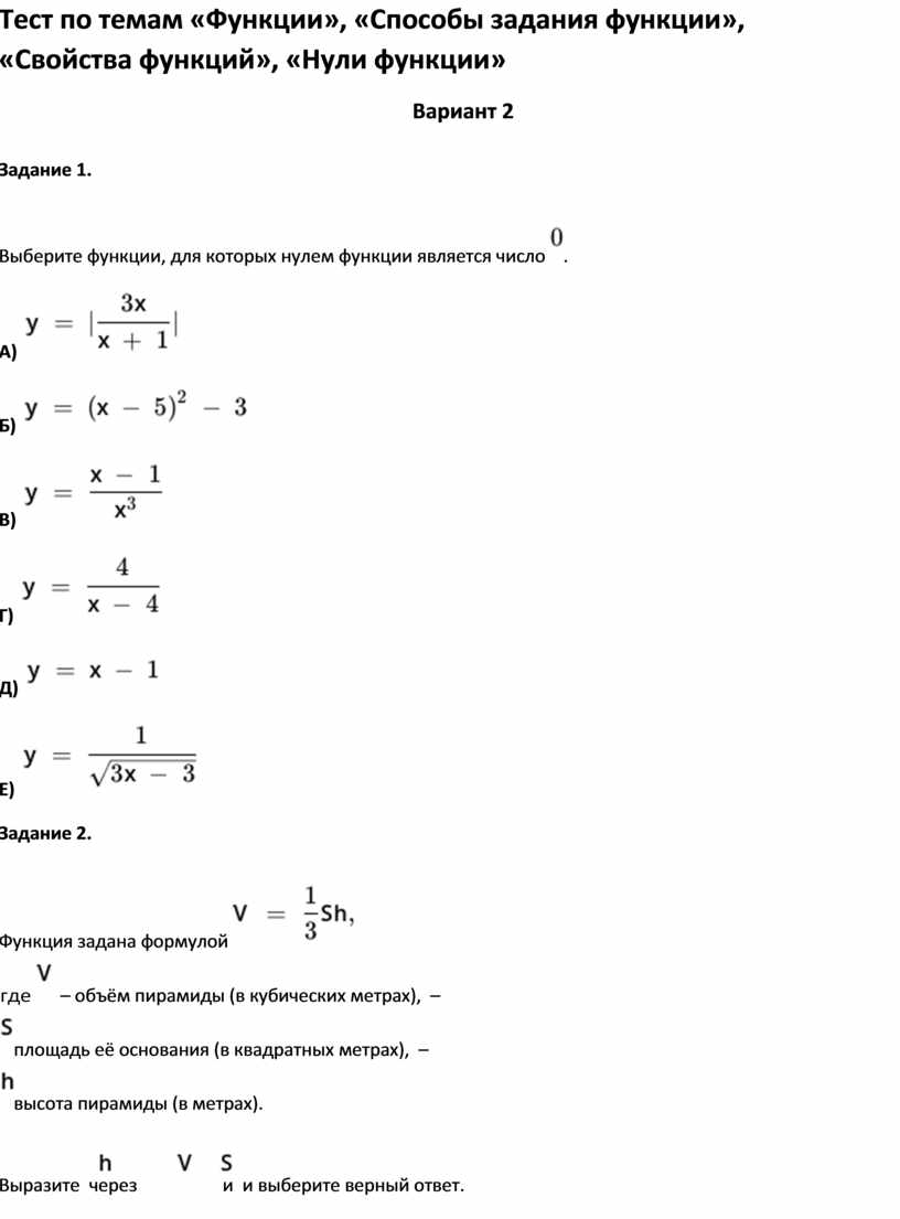 «Свойства функций», «Нули функции»