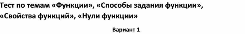 Тест по темам «Функции», «Способы задания функции»,