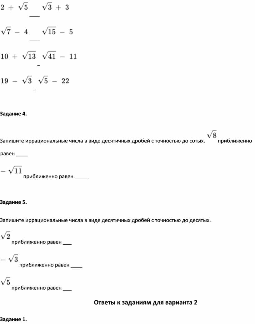 Запишите иррациональные числа в виде