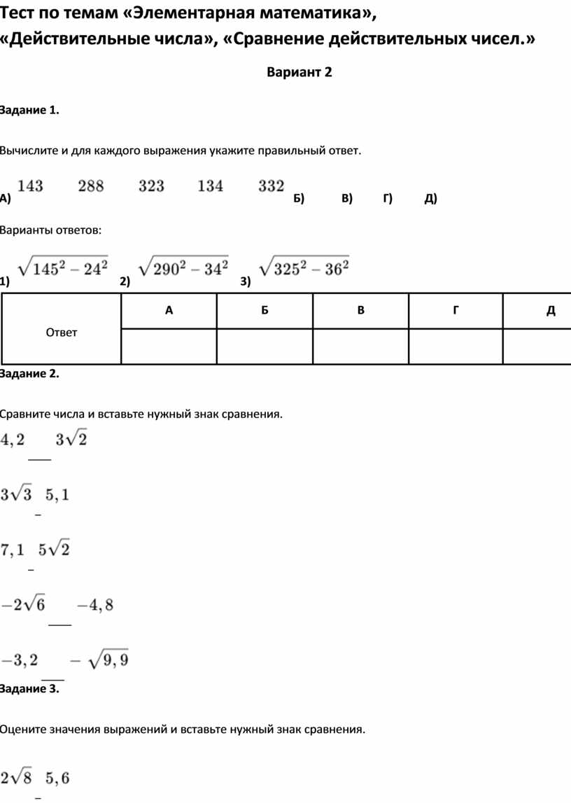 Вычислите и для каждого выражения укажите правильный ответ.