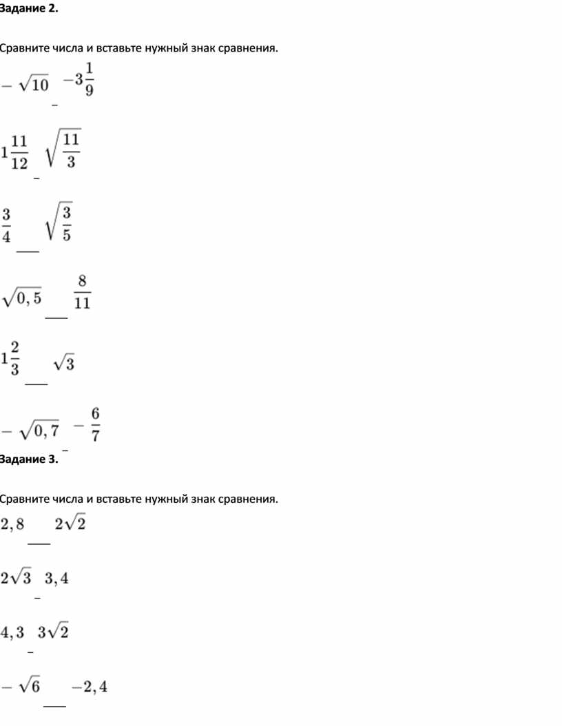 Сравните числа и вставьте нужный знак сравнения.