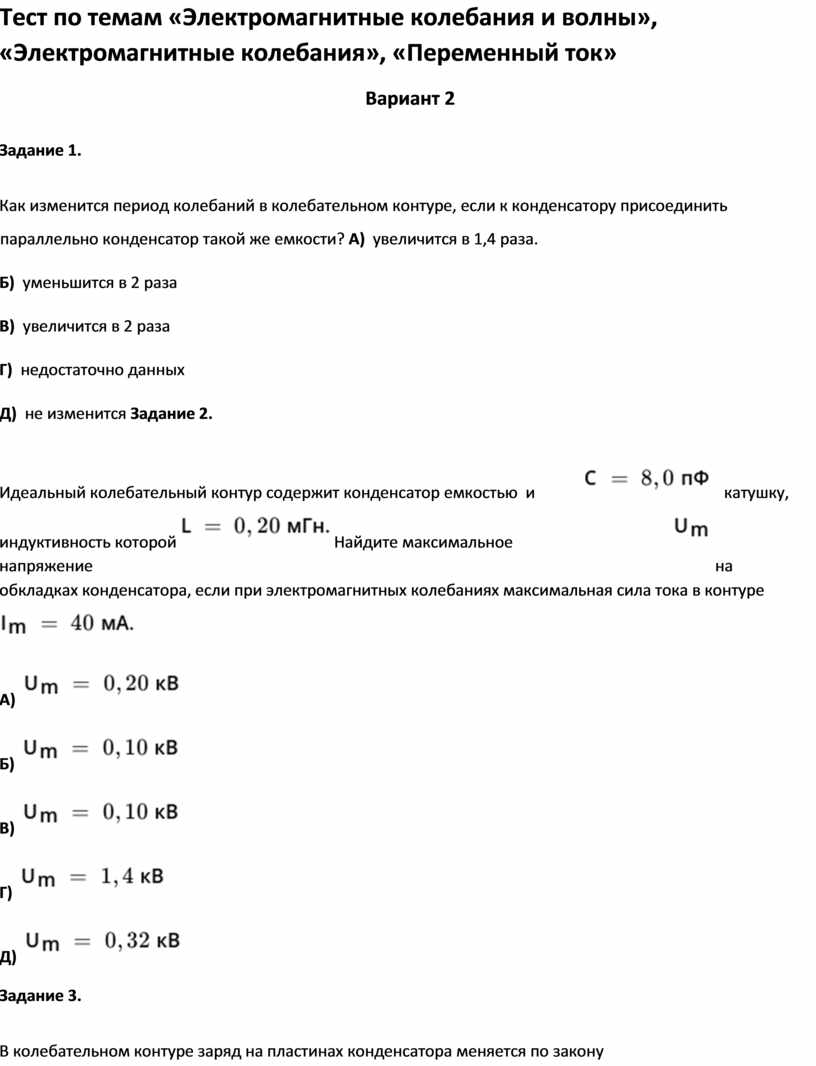 Как изменится период колебаний в колебательном контуре, если к конденсатору присоединить параллельно конденсатор такой же емкости? А) увеличится в 1,4 раза.