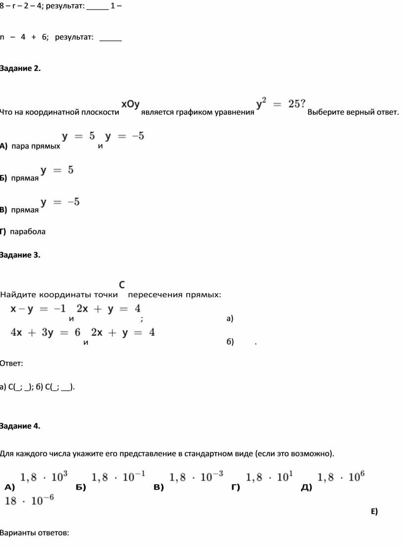 8 – r – 2 – 4; результат: _____ 1 – n – 4 + 6; результат: _____ Задание 2.