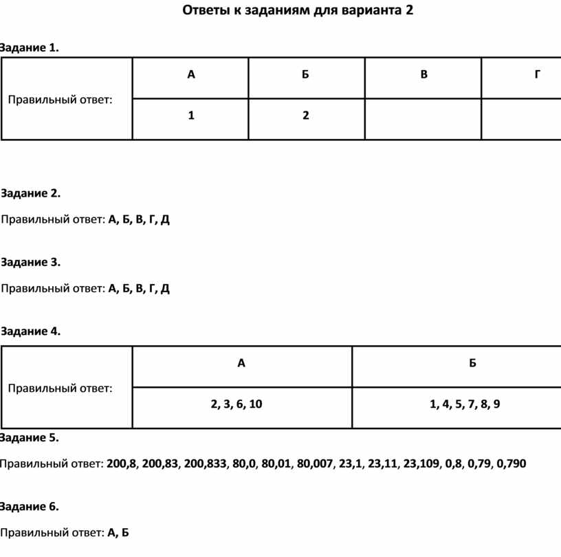 Задание 2. Правильный ответ: А, Б, В, Г, Д Задание 3. Правильный ответ: А, Б, В, Г, Д Задание 4. |