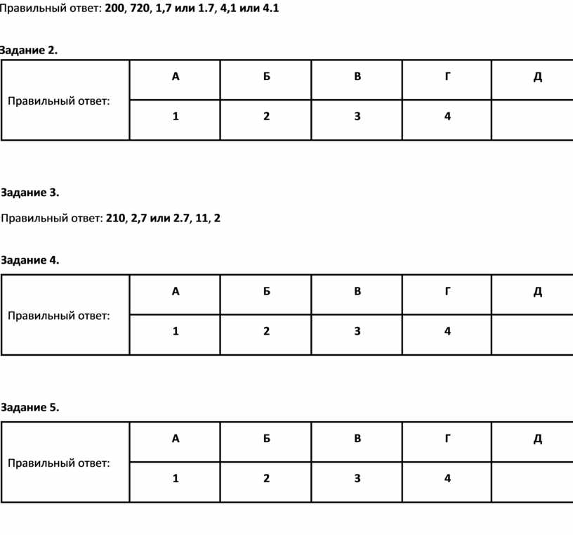 Задание 3. Правильный ответ: 210, 2,7 или 2.7, 11, 2 Задание 4. |