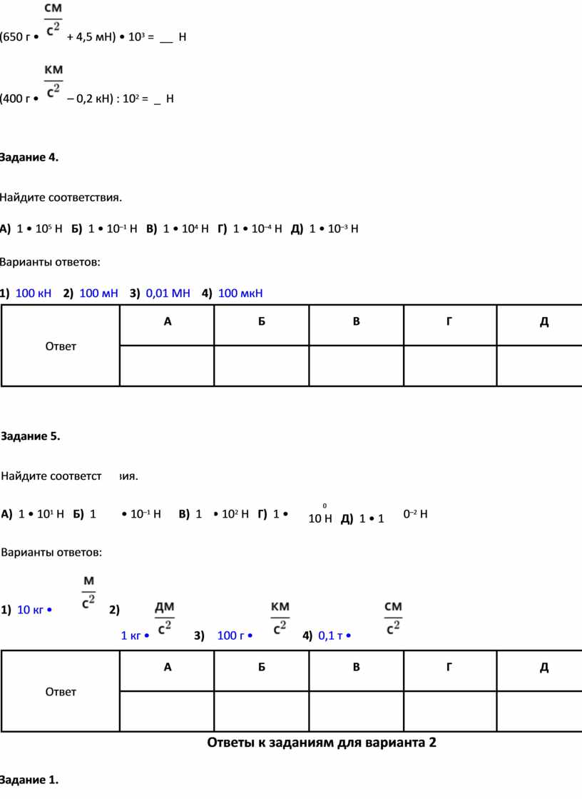 А) 1 • 105 Н Б) 1 • 10–1 Н В) 1 • 104 Н Г) 1 • 10–4 Н Д) 1 • 10–3 Н