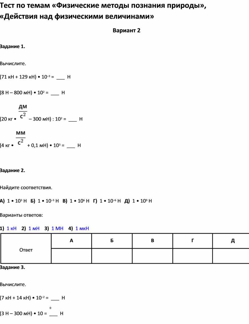 1) 100 кН 2) 100 мН 3) 0,01 МН 4) 100 мкН
