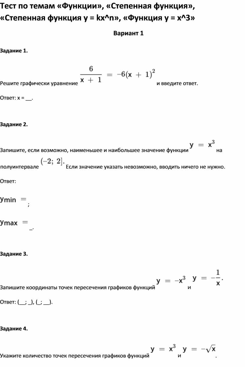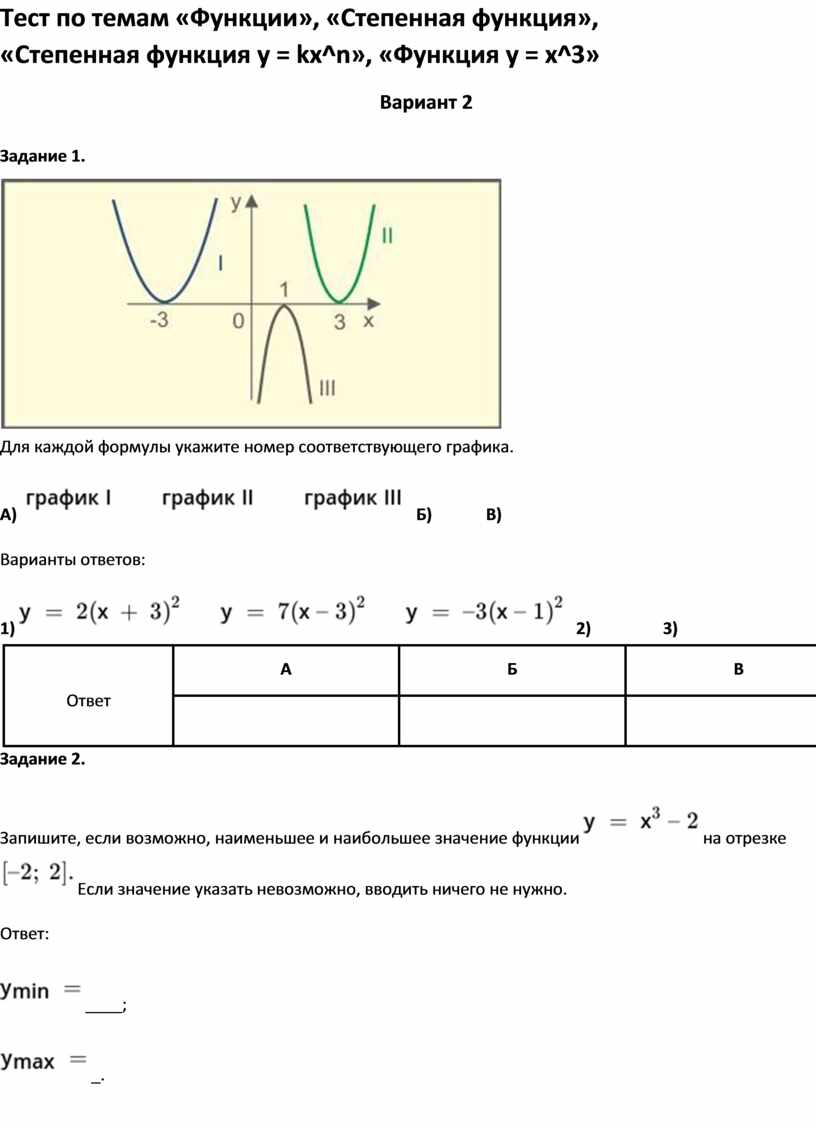 Тест по темам «Функции», «Степенная функция»,