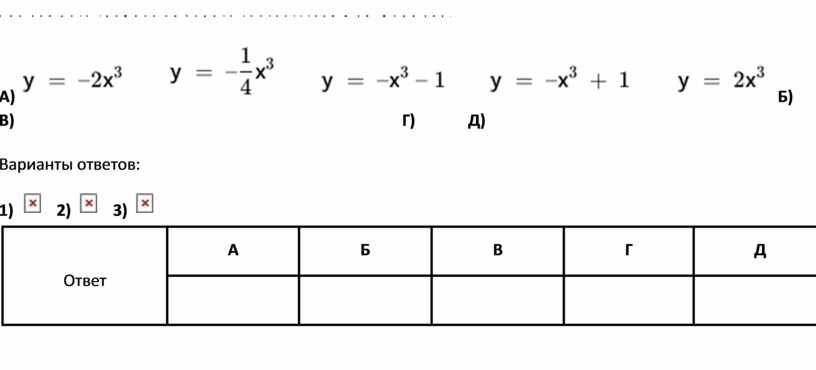 Для каждой формулы укажите номер соответствующего графика.