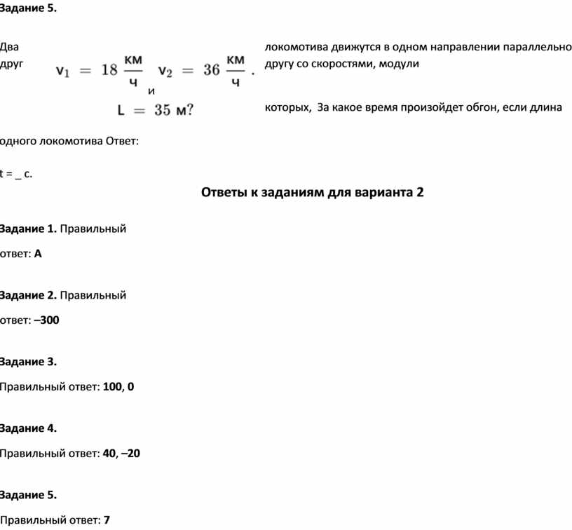 Два локомотива движутся в одном направлении параллельно друг другу со скоростями, модули