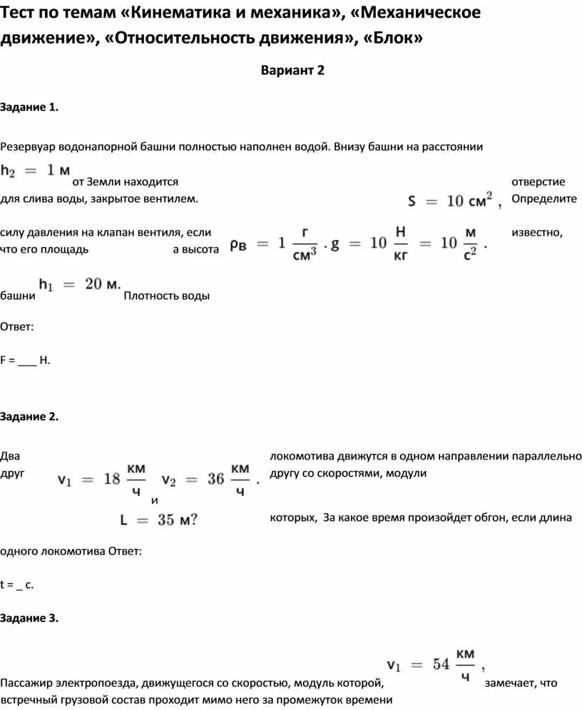 Тест по темам «Кинематика и механика», «Механическое движение», «Относительность движения», «Блок»