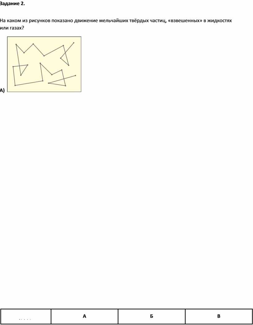 На каком из рисунков показано движение мельчайших твёрдых частиц, «взвешенных» в жидкостях или газах?