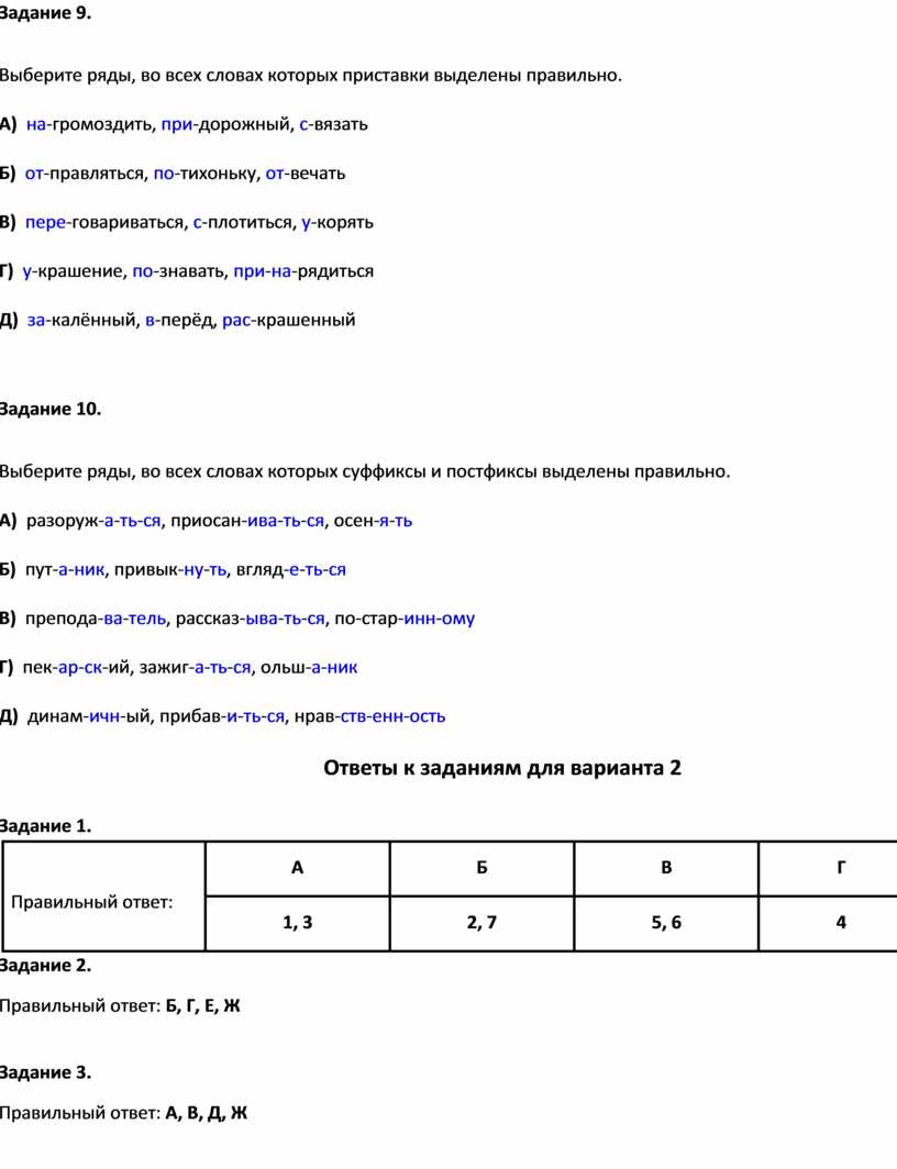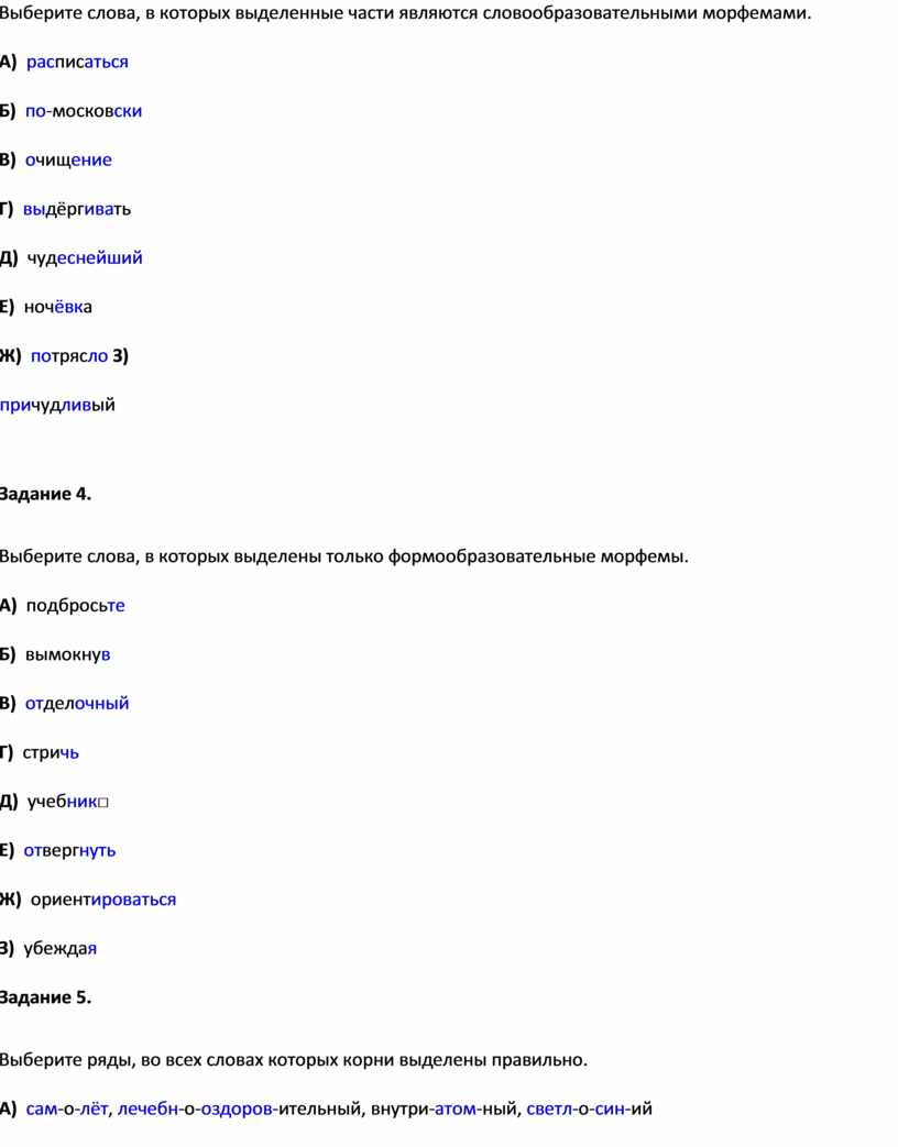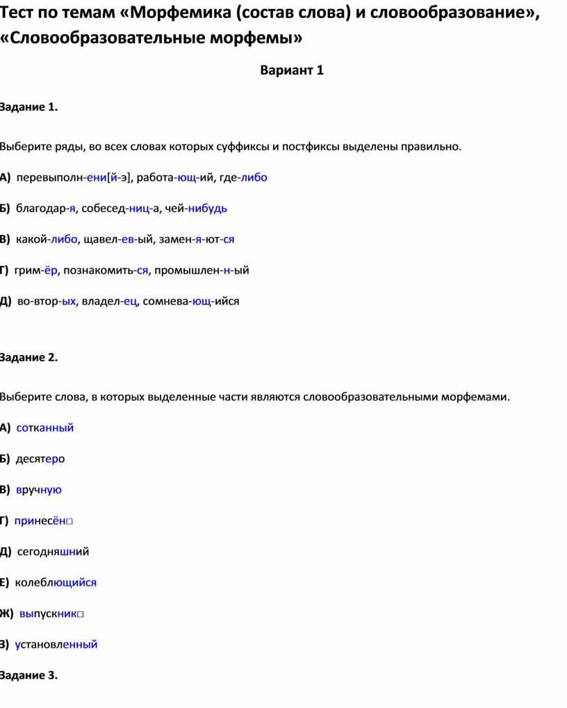 Тест по темам «Морфемика (состав слова) и словообразование», «Словообразовательные морфемы»