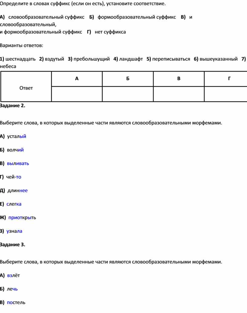и формообразовательный суффикс Г) нет суффикса